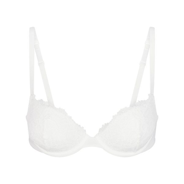 Fall in love with our signature Fits Everybody push-up, now updated with all-over lace. This innovative demi bra features light foam pads for a sexy, supportive lift, a smoothing microfiber wing, and a flexible underwire for all-day comfort. Features 360 stretch fabric to fit in between sizes, adjustable straps, and hook and eye back closure. Fits true to your SKIMS bra size.
