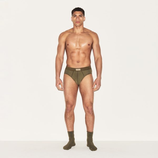 This brief is made of the softest cotton you’ll ever feel with built-in recovery for maximum comfort and 24/7 wear. Featuring a comfy elastic waistband with SKIMS logo detail, a perfectly engineered 2-ply pouch, and clean seam lines for an ideal fit that remains invisible under clothing. Fits true to size.